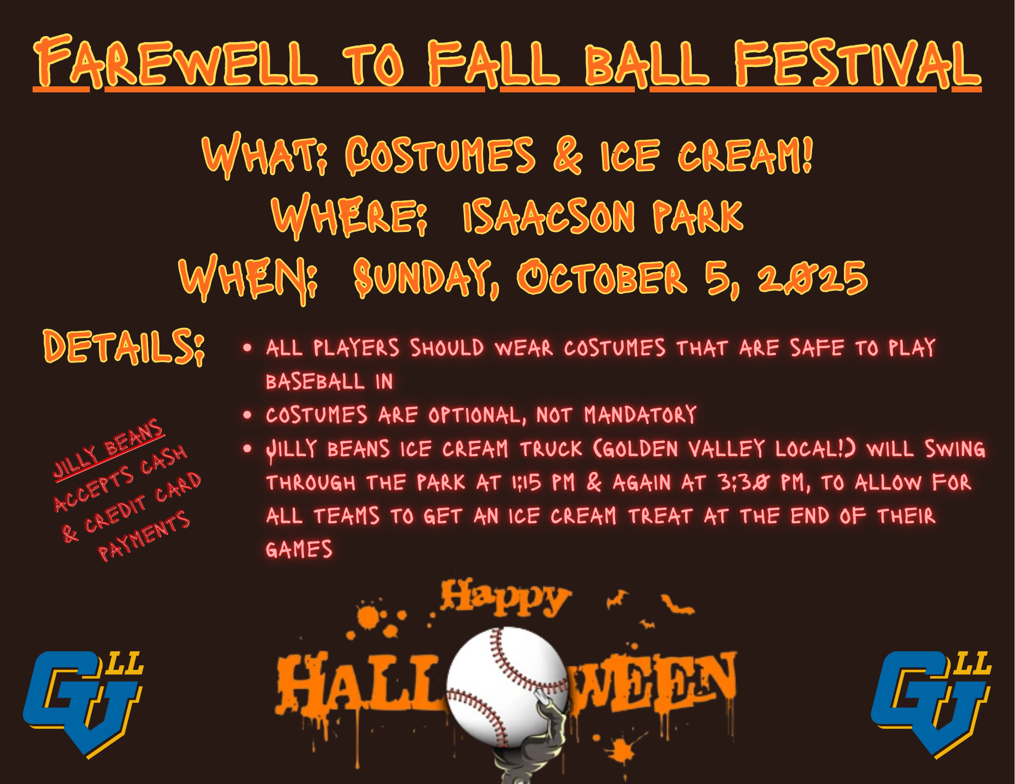 Come for costumes and baseball and stay for Jilly Beans Ice Cream Truck!