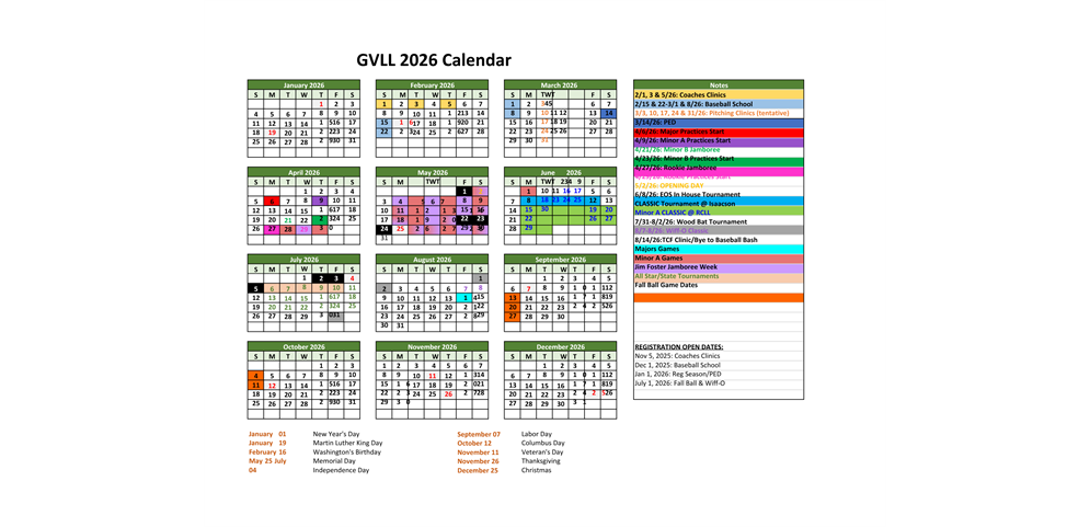 Mark your calendars now for the important 2026 GVLL dates!!